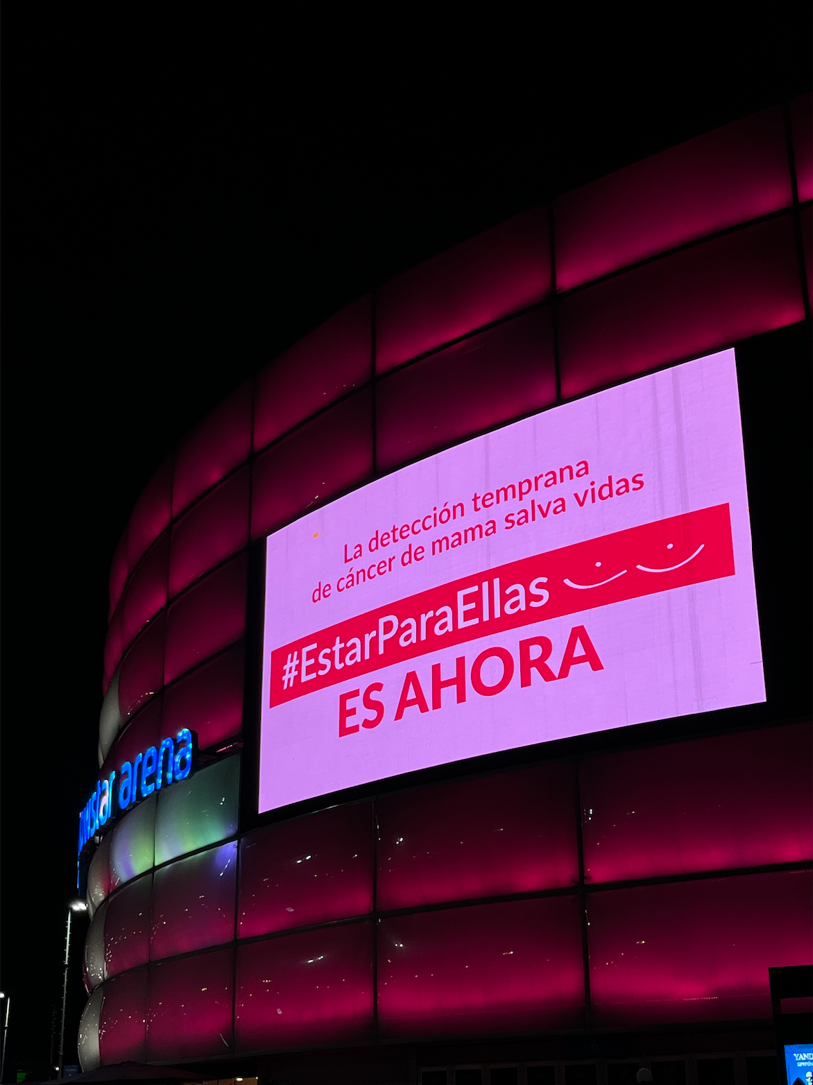 Las conversaciones siguieron en distintos espacios, y las oficinas de Movistar Colombia se convirtieron en un punto de encuentro para la concientización a través de charlas presenciales y virtuales para reflexionar sobre los factores de riesgo, los signos de alerta y la importancia de realizar controles periódicos. Y fue esa misma alianza la que, el 19 de octubre, Día Internacional de la Concientización sobre el Cáncer de Mama, llevó la causa al corazón de Bogotá: el Movistar Arena se iluminó de rosa con la consigna #EstarParaEllas, llevando el mensaje a miles de mujeres colombianas.
