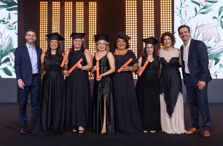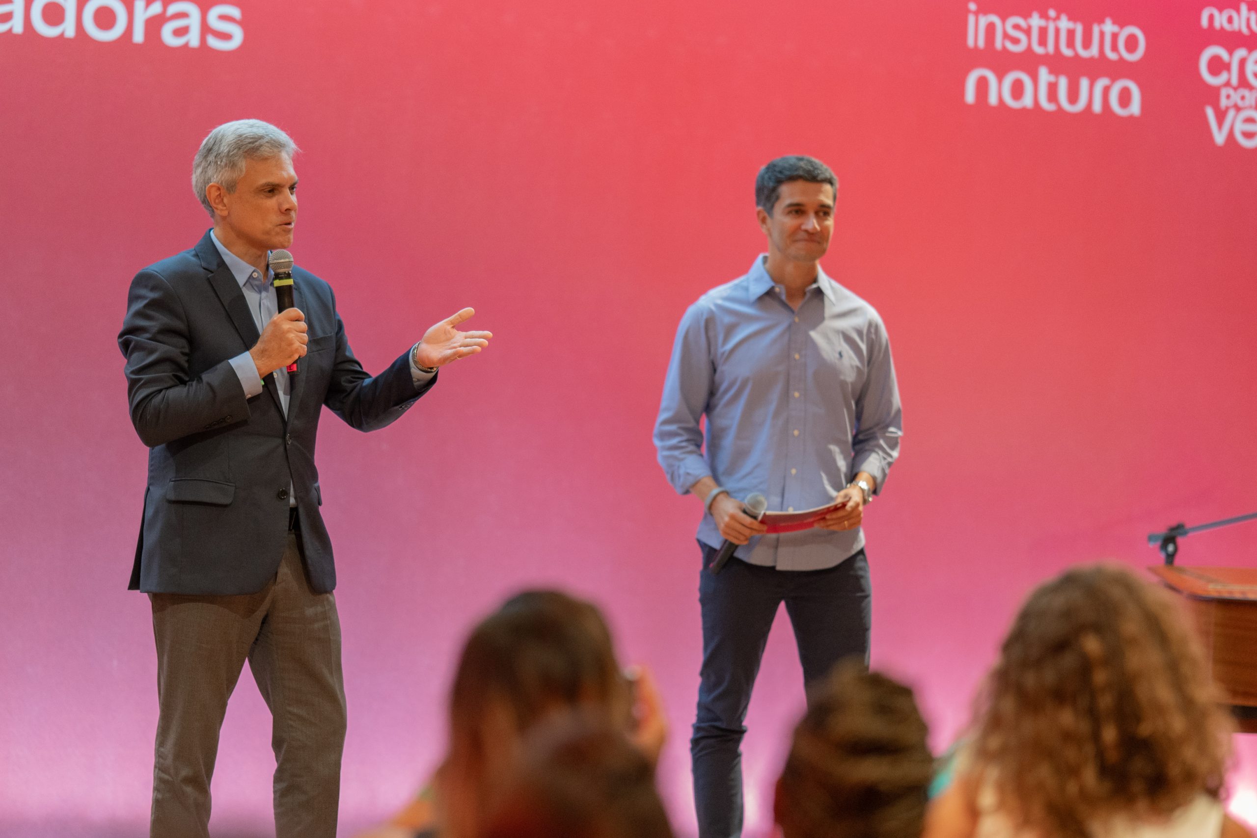 No dia 3 de fevereiro, aconteceu a aguardada Noite de Reconhecimento, com a celebração da formatura de cinco Líderes de Negócios, uma representante de cada região do Brasil. Beneficiadas por bolsas de estudo 100% financiadas por Natura Crer Para Ver, elas concluíram o ensino superior ao final de 2025, simbolizando como o acesso à educação transforma trajetórias individuais e fortalece toda a rede. A entrega do canudo e do capelo às formandas por David Saad, diretor-presidente do Instituto Natura, Duda Cavalcanti, diretora de Venda Direta Natura e Avon Brasil, e Diego Costa, diretor da marca Natura, reforçou o valor da educação como alavanca para o desenvolvimento humano e social.